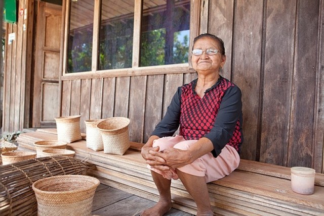 Anyaman bambu, tas rajut, souvenir daur ulang, dan kerajinan khas daerah.